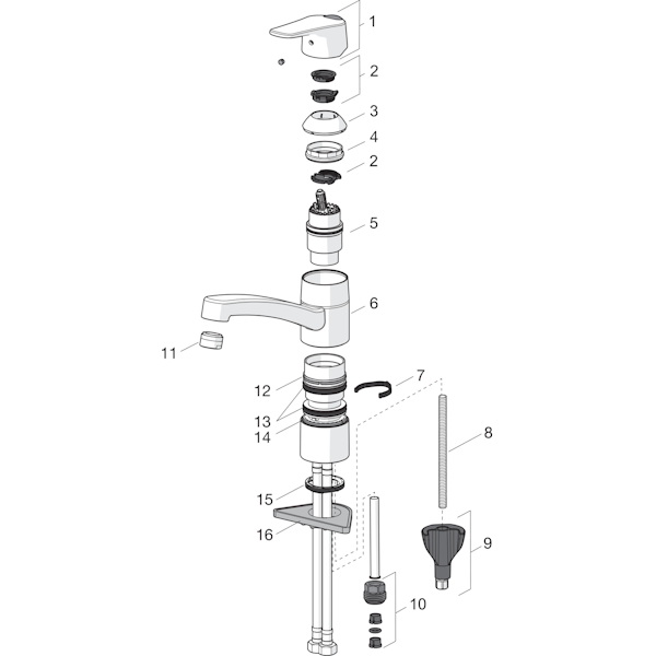 Oras Vega 1820G -keittiöhanaan saatavilla olevat varaosat:
