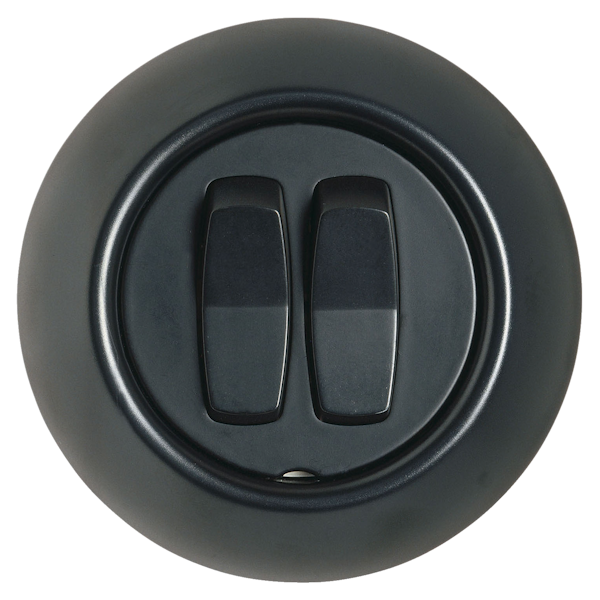 Renova-sarjan valokatkaisija. Soveltuu esim. portaikkoon ja käytäviin, kahdella 6-kytkimellä voidaan sammuttaa ja sytyttää samaa valopistetta kahdesta eri paikasta. Musta.