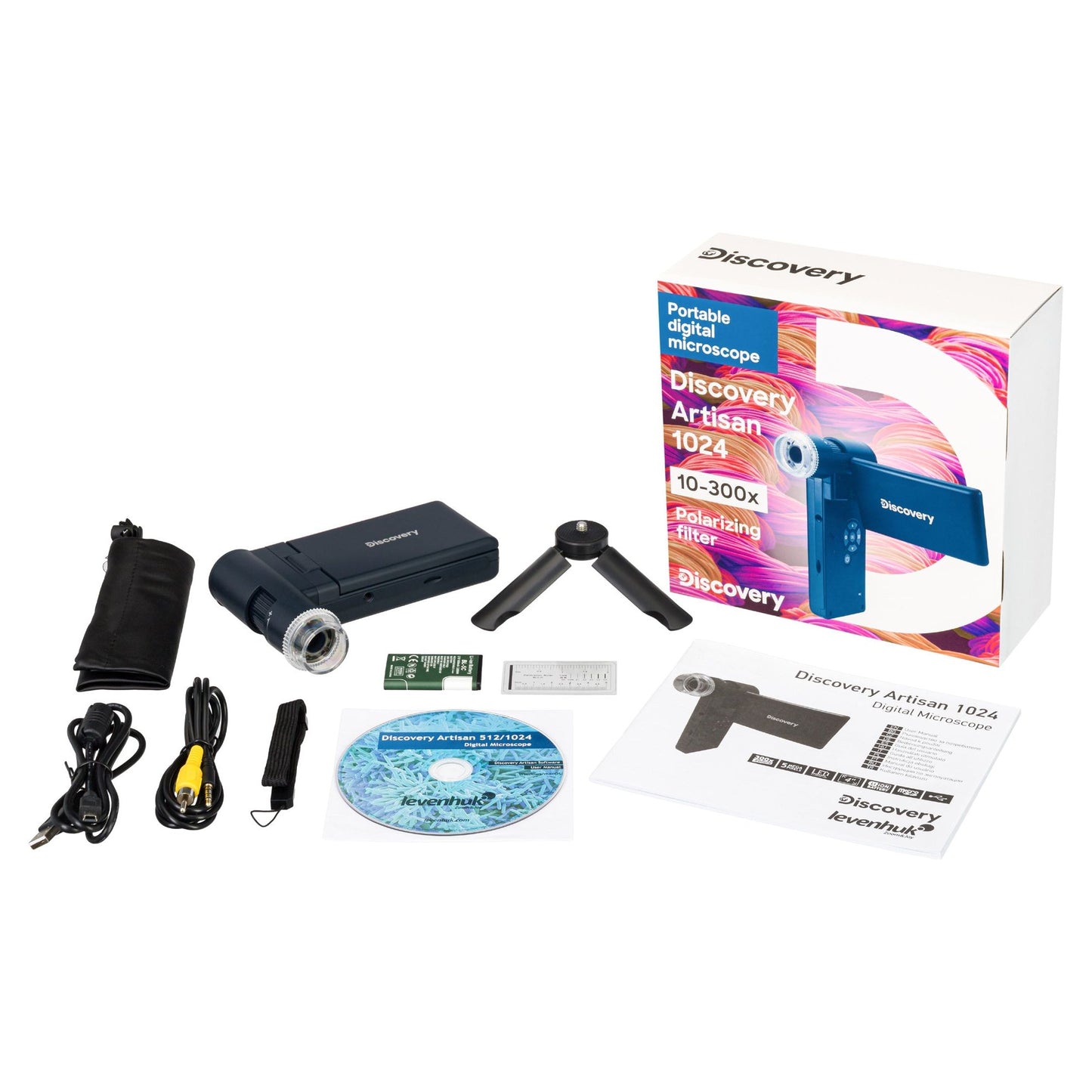 Levenhuk Discovery Artisan 1024 on kannettava mikroskooppi, jossa on 5 megapikselin digitaalikamera. Tämä laite saa virtansa vaihtovirtalähteestä tai akusta, joten voit ottaa sen mukaan minne haluat. Se on kätevä ottaa mukaan, kun lähdet asiakkaan luo tai tutkit näytteitä kentällä. Se on hyödyllinen myös esityksissä ja ryhmähavainnoissa, koska se on yhteensopiva ulkoisten laitteiden kanssa. Laitteen ominaisuudet ovat hyödyllisiä erilaisille asiantuntijoille: jalokivikauppiaille, geologeille, numismaateille, korjaamoiden työntekijöille, arvioijille ja monille muille. Kädessä pidettävää mikroskooppia käytetään usein myymälöiden tuotteiden laadun tarkistamiseen ja mahdollisen homeen havaitsemiseen hedelmissä ja vihanneksissa.