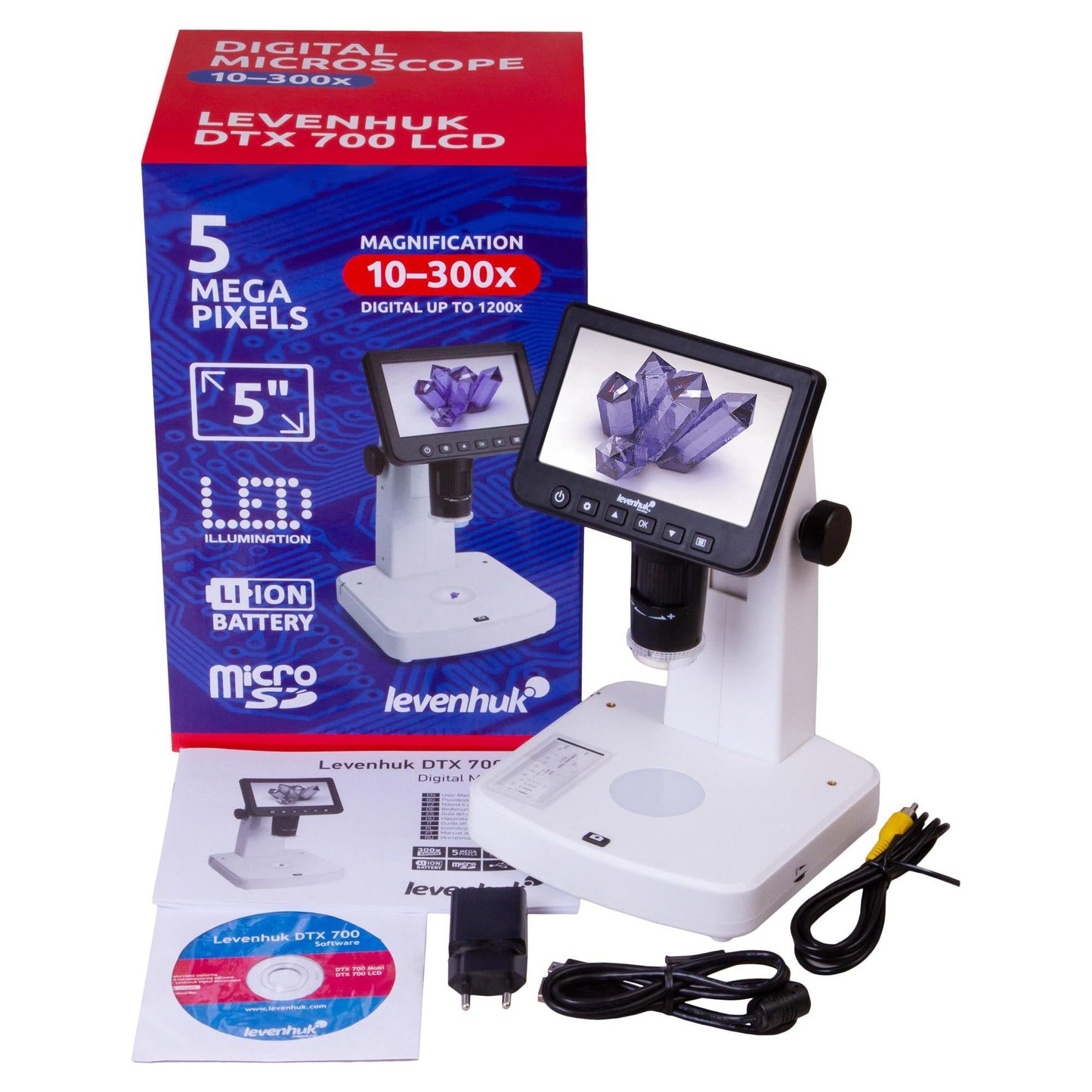 Levenhuk DTX 700 LCD-digitaalimikroskooppi soveltuu korujen, elektronisten levyjen, mineraalien, kolikoiden ja metalliosien käsittelyyn. Tämä mikroskooppi on hyödyllinen myös kotikäyttöön, esim. hyönteisten ja kasvien tutkimiseen. Levenhuk DTX 700 LCD on varustettu LCD-näytöllä, joka vähentää silmien rasitusta pitkän työskentelyn aikana ja on mukavampaa kuin katsoa tavallisen mikroskoopin okulaarin läpi.