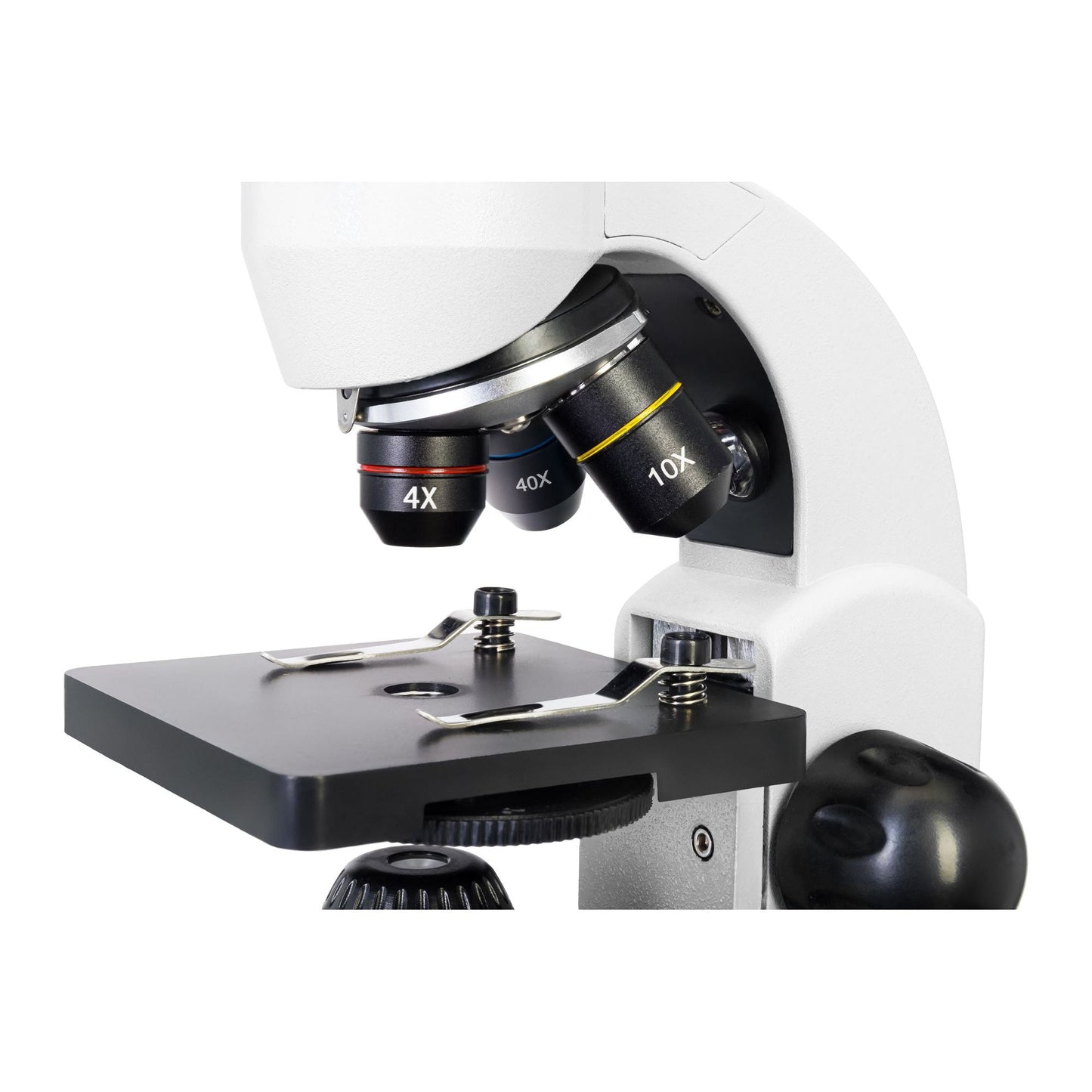 Kolme objektiivia mahdollistavat 64x, 160x ja 640x suurennuksen. 40xs objektiivilinssissä on erityinen jousikuormitettu mekanismi. Tarkennettaessa voit vahingossa koskettaa havaittua näytettä objektiivilinssillä. Mutta jousikuormitettu linssi vetäytyy hieman sisään ja estää mahdolliset vauriot. Sarja sisältää myös 2x Barlow-linssin, joka kaksinkertaistaa minkä tahansa objektiivin suurennuksen. Perussarjan avulla voit saavuttaa 1280x suurennustehon!