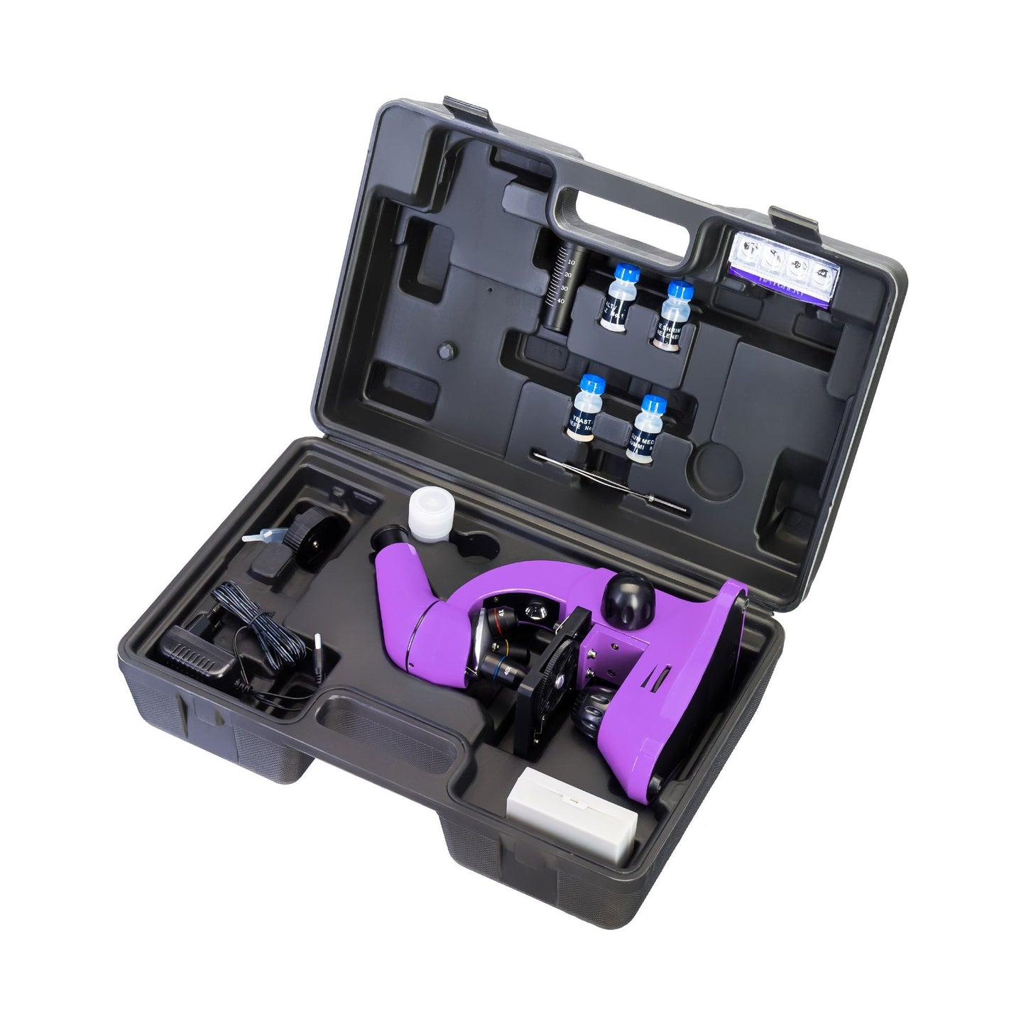 Tukeva muovikotelo mahdollistaa mikroskoopin ja kaikkien pakkaukseen sisältyvien tarvikkeiden turvallisen kuljetuksen.