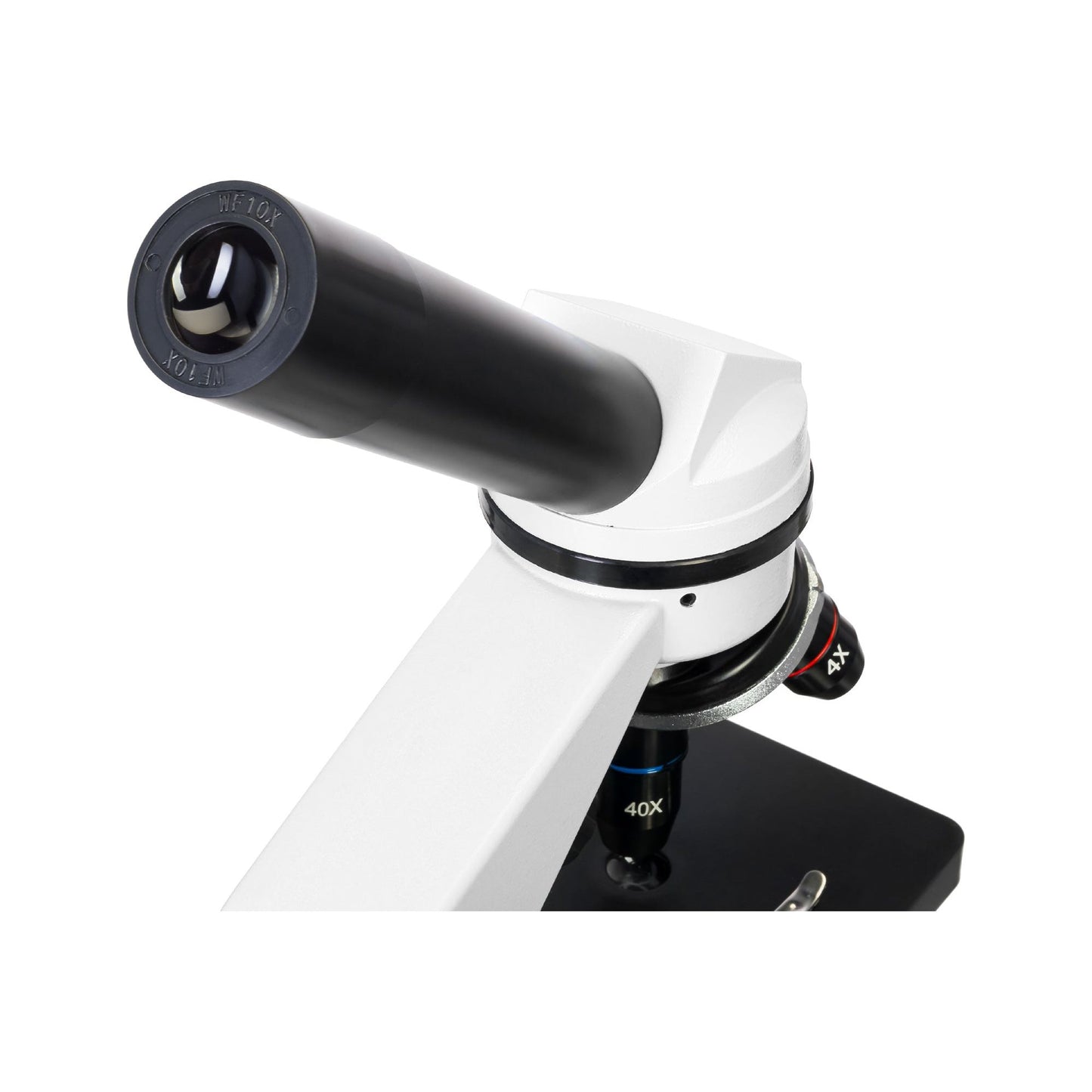 Linssit on valmistettu erityisen läpinäkyvästä optisesta lasista. Kaikki optiset pinnat on päällystetty useilla kerroksilla heijastusta estävällä pinnoitteella – siksi mikroskooppi luo teräviä, kontrastisia ja erittäin yksityiskohtaisia ​​kuvia havaituista näytteistä. Kolmella objektiivilla voit saada laajan suurennusalueen 40x - 400x. Voit helposti muuttaa suurennusta kääntämällä pyörivää suukappaletta.