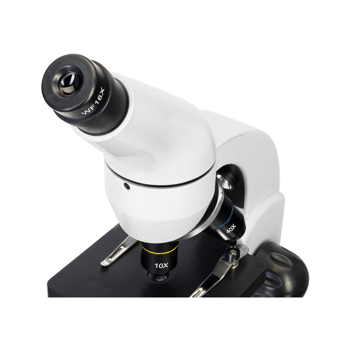 Sarja sisältää kolme objektiivilinssiä: 4x, 10x ja 40xs. Tehokkaimmassa objektiivissa on erityinen jousikuormitettu mekanismi, joka suojaa optiikkaa mekaanisilta vaurioilta. Vaikka tarkentamisen aikana laskeisit objektiivin vahingossa liian pitkälle, jousikuormitettu linssi vetäytyy hieman sisään, mikä estää optiikan tai näytteen vahingoittumisen. 2x Barlow-linssi kaksinkertaistaa käyttämäsi objektiivin suurennuksen. Mikroskoopin suurin suurennusteho on 1280x!
