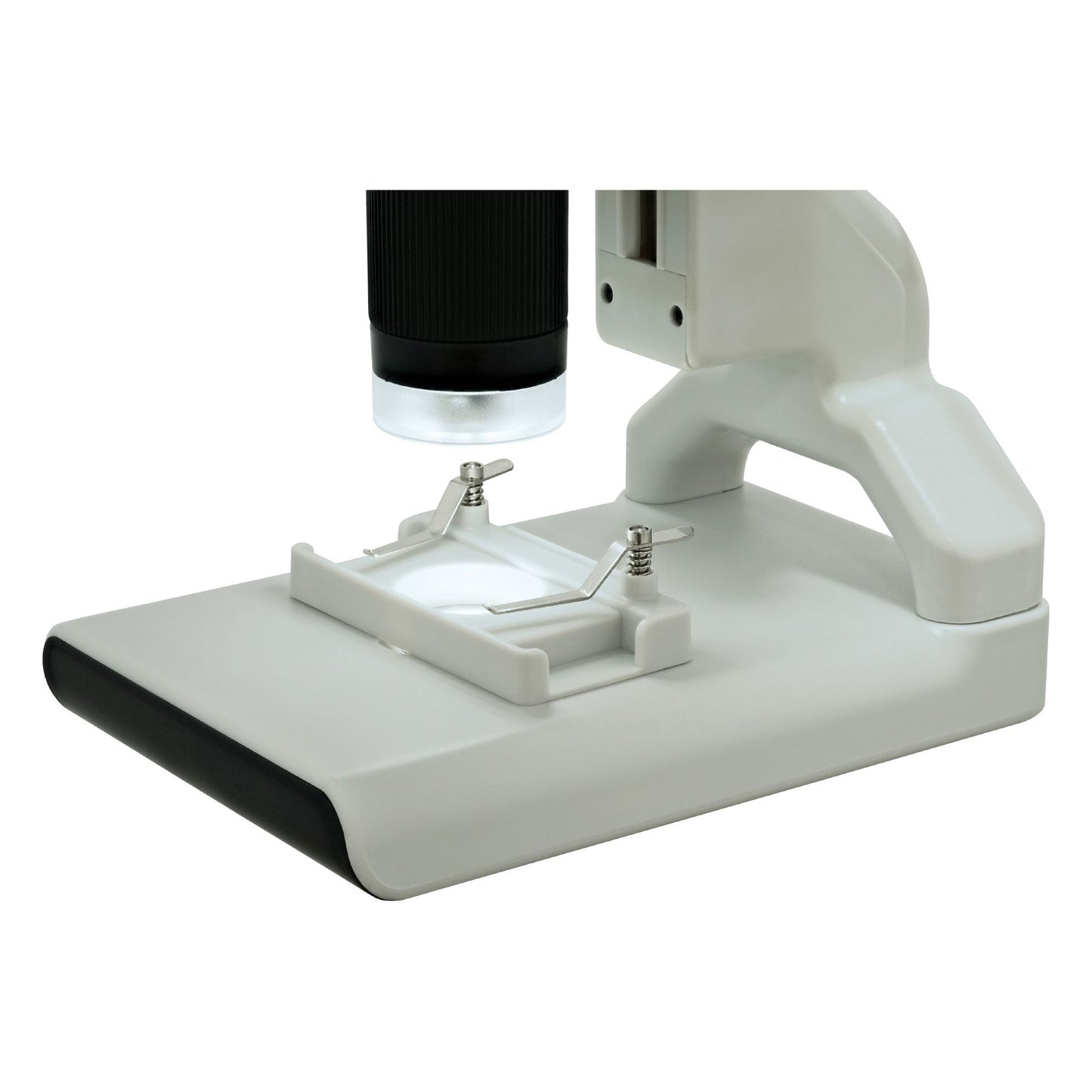 Mikroskoopin taso on valaistu ylhäältä ja alhaalta. Sen avulla voit tutkia minkä tahansa läpinäkyvyyden astetta olevia näytteitä. Mikroskoopin objektilasien kiinnittämiseen käytetään metalliklipsiä. Pieni sarja käyttövalmiita näytteitä sisältyy pakkaukseen.