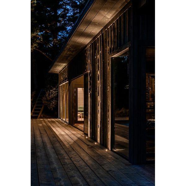 Hopeinen Saas blaze floor on maa/lattia valaisin kapealla valokeilalla. Valokeilan ansiosta valaisin valaisee mukavasti esimerkiksi terassilla aina räystääseen saakka heijastuen sieltä vielä alas pehmeänä valona. Valaisin soveltuu myös hyvin pylväiden korostukseen kapean keilansa vuoksi.