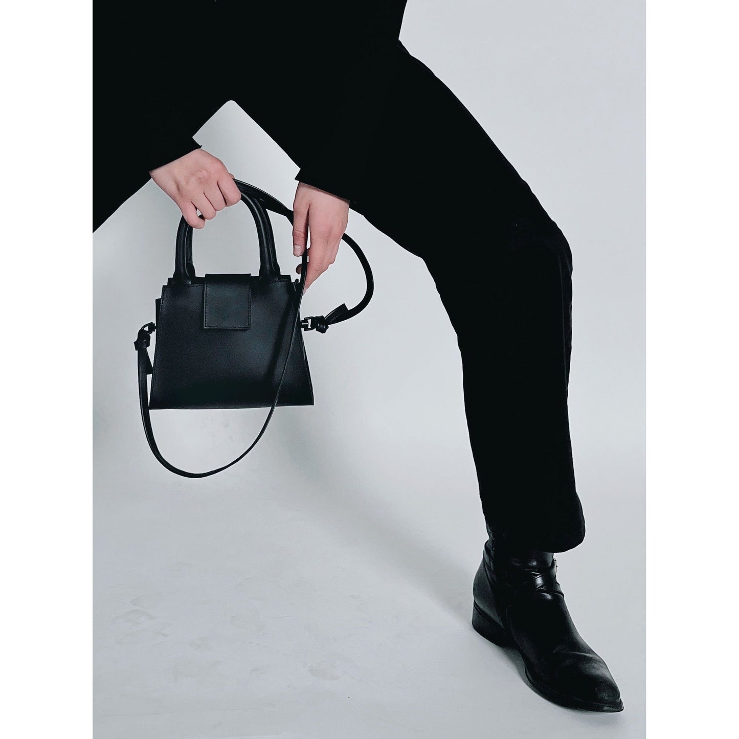 Mini nahkainen käsilaukku sisältää myös irrotettavan ja säädettävän 125 cm pitkän nahkaisen olkahihnan kantamiseen poikkivartalolla. Solmuyksityiskohdat luovat rennon ilmeen, joka tasapainottaa jäsenneltyä tuntua.