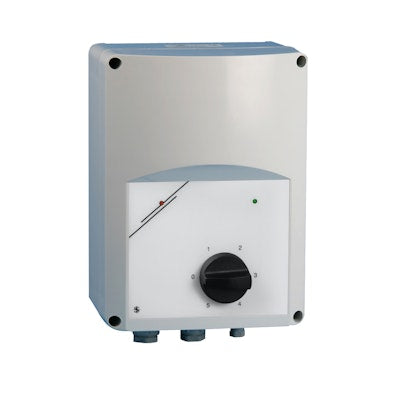 STRA-1 säädin soveltuu moottorien pyörimisnopeuden manuaaliseen säätämiseen viidessä eri portaassa. Suojausluokka IP54