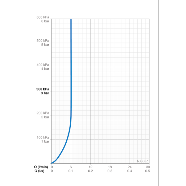- virtaama 300 kPa (virtauksenrajoittimin): 0.1 l/s