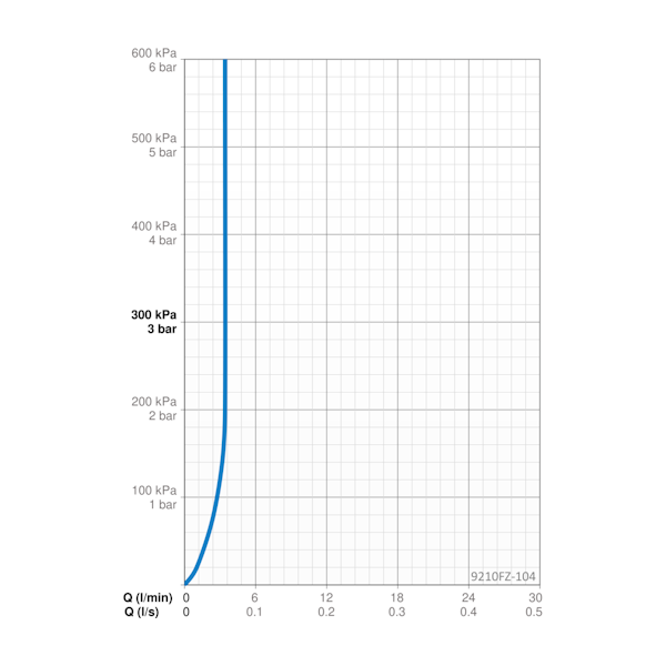 - virtaama 300 kPa (virtauksenrajoittimin): 0.057 l/s