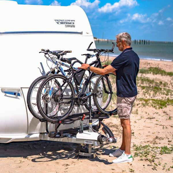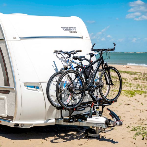 Voidaan kiinnittää mihin tahansa matkailuautomerkkiin. Vakiona kahdelle pyörälle. Pyörien helppo sijoittaminen vaakasuoran siirron ansiosta. Vakiovarusteena toimitettavan Zoom 4 Bikes -teleskooppituen avulla voidaan asentaa jopa kaksi lisäkiskoa. Yläkiinnikkeet ja elegantti Kit Support Bar -kisko itsekierteittävien ruuvien ja vastalevyjen kanssa lisäävät asennuksen aikana liikkumavaraa.