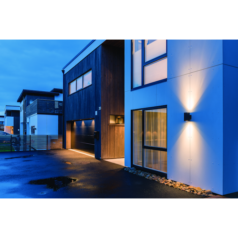 Nelikulmainen seinä/kattovalaisin sisä- ja ulkokäyttöön. Valonjako ylös/alas tai ainoastaan alas. Painevalettua jauhemaalattua alumiinia. Lasikupu. Helppo asentaa, älykäs seinä/kattokiinnike, jossa pistokeliitäntä valaisimelle, 2 kaapeliläpivientiä, pintakaapelointi mahdollisuus, irrotettavat ketjutettavat pikariviliittimet. Saatavana myös erillinen kulmaasennuskiinnike. Valaisimille myönnetään 10 vuoden korroosionkestotakuu, IP54, ilkivaltaluokka IK08.