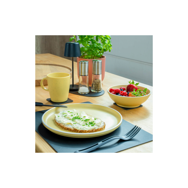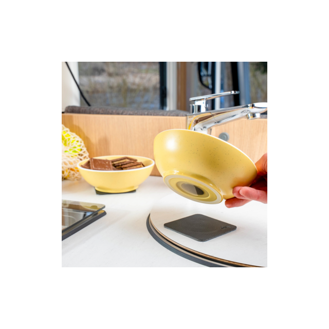 Korkealaatuisissa lautasissa on käsinvalettu magneetti pohjassa, joka takaa turvallisen pidon matkan aikana. Yhdessä metallisen nanogeelialustan tai yhteensopivan pöytäalustan kanssa lautaset pysyvät luotettavasti paikoillaan. Älykkään nanogeeliteknologian ansiosta molemmat alustat voidaan irrottaa jättämättä jäämiä, ne ovat helppoja puhdistaa ja niitä voi käyttää uudelleen. Lisäksi magneettinen voima pitää lautaset paikoillaan myös pinottuna, mikä varmistaa kolinattoman säilytyksen kaapissa. Valmistettu Saksassa – korkeimpien laatustandardien mukaisesti.