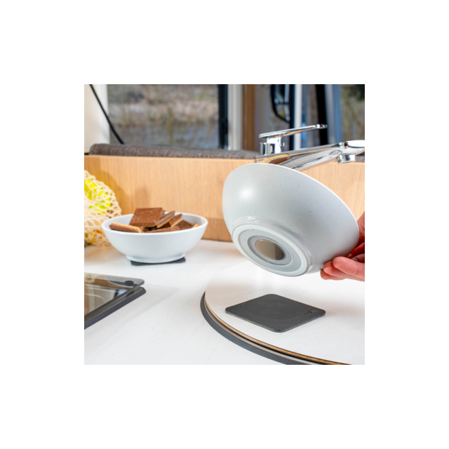 Korkealaatuisissa lautasissa on käsinvalettu magneetti pohjassa, joka takaa turvallisen pidon matkan aikana. Yhdessä metallisen nanogeelialustan tai yhteensopivan pöytäalustan kanssa lautaset pysyvät luotettavasti paikoillaan. Älykkään nanogeeliteknologian ansiosta molemmat alustat voidaan irrottaa jättämättä jäämiä, ne ovat helppoja puhdistaa ja niitä voi käyttää uudelleen. Lisäksi magneettinen voima pitää lautaset paikoillaan myös pinottuna, mikä varmistaa kolinattoman säilytyksen kaapissa. Valmistettu Saksassa – korkeimpien laatustandardien mukaisesti.