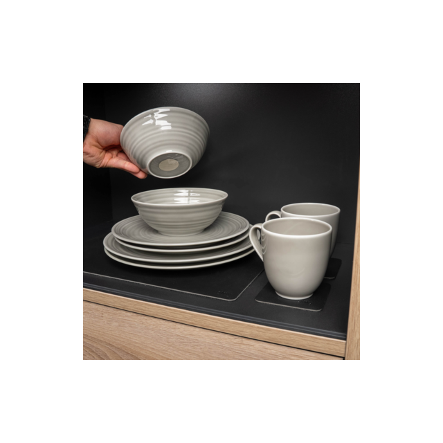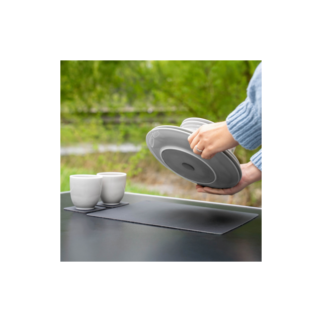 11-osaisen Silwy Magnetic posliiniastiaston avulla matkustat tyylikkäästi ja ilman kolinaa. Korkealaatuisessa posliinissa on käsinvaletut magneetit pohjassa, jotka yhdessä mukana tulevien nanogeelilisävarusteiden kanssa pitävät astiastosi luotettavasti paikoillaan – pystyasennossa kaapissa tai pöydällä. Liukumaton pinnoite tarjoaa lisäpitoa, ja magneettinen voima on täydellisesti tasapainotettu: turvallinen matkoilla, helppo irrottaa jokapäiväistä käyttöä varten.
