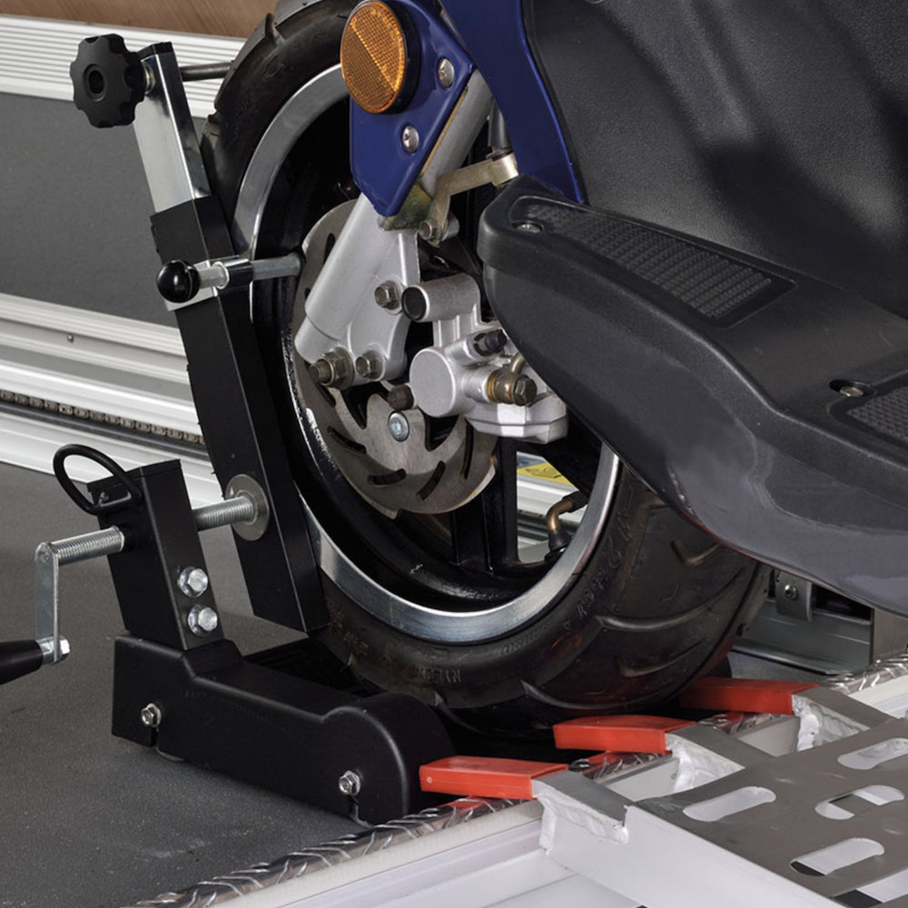 Telineen kantavuus on jopa 160 kg, mikä tekee siitä sopivan useimmille skootterimalleille. Sähköisen version mukana toimitetaan kaukosäädin, joka lisää käyttömukavuutta. Skootterin etupyörä asetetaan kelkkaan ja kiinnitetään tukevasti kiinnityshihnoilla takaosasta, mikä takaa turvallisen kuljetuksen.