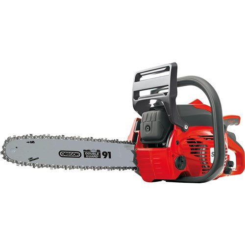 Oregon terälaippa 16"/40cm, ketjunopeus 22,9m/s. Ketjutyyppi Oregon 3/8” 1,3mm. Polttoainetankki 270ml, ketjuöljy 230ml.