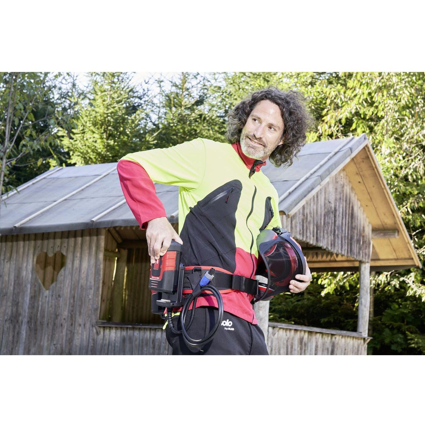 Laitteen paino vain 3,2kg. BB 40 akkuvyö kantaa itse akun painon, ja vyö yhdistetään välijohdolla laitteeseen. 4,0Ah akku antaa jatkuvaa sahausaikaa n. 20min, 5Ah n. 30min.