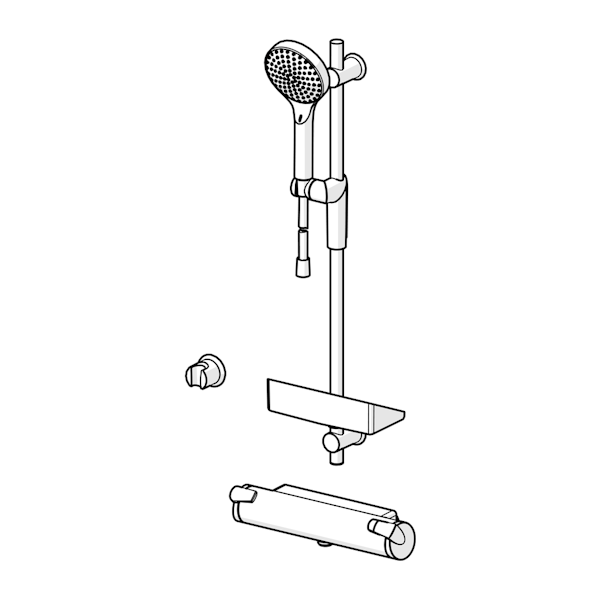 Suihkusetti sisältää digitaalisen käsisuihkun, säädettävän suihkutangon (max. 720 mm), suihkuletkun (1750 mm) ja saippuatelineen.