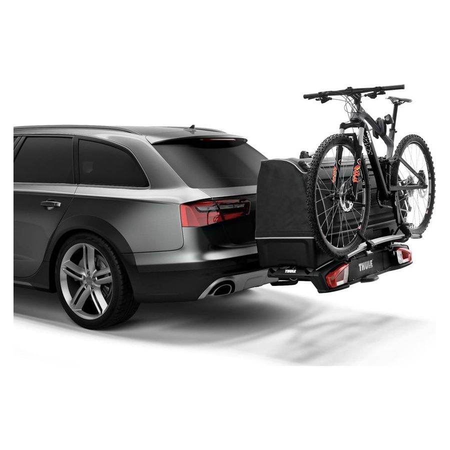 Kun myös Thule BackSpace XT Bike Arm- ja Thule VeloSpace XT Bike Adapter -tuotteita käytetään, voit kuljettaa Thule BackSpace XT -kuljetuslaatikon lisäksi yhden polkupyörän (lisävarusteet myydään erikseen).
