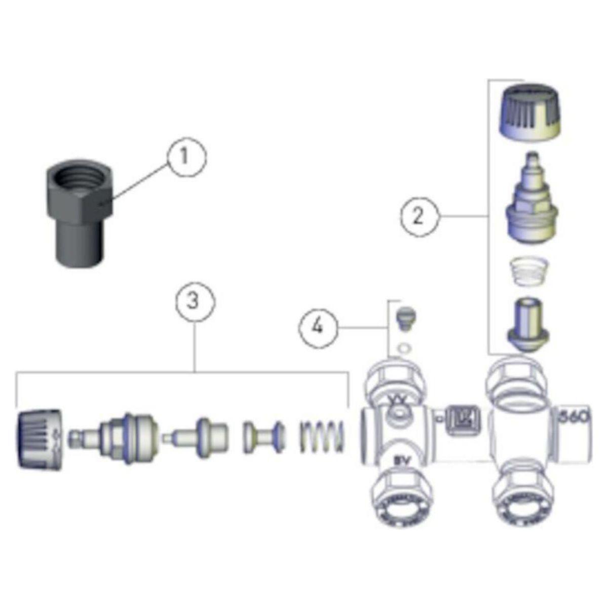 Venttiiliyhdistelmässä on erillinen ilmaruuvi lämmittimen tyhjentämistä varten.