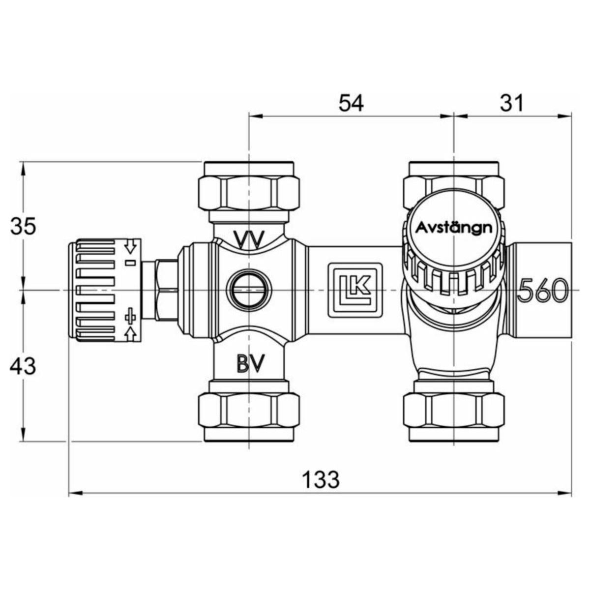 VENTTIILIYHDISTELMÄ LK 15mm k/k=54mm
