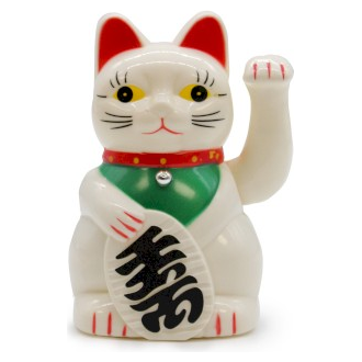 Valkoisen heiluttavan kissan (japaniksi Maneki Neko) sanotaan tuovan mukanaan onnea ja puhtautta. Käytä tilaisuus hyväksesi ja tuo kotiisi ripaus onnea ja puhtautta tämän tyylikkään vilkuttavan kissan avulla. Kissan korkeus 16cm. Sopii myös lahjaksi!